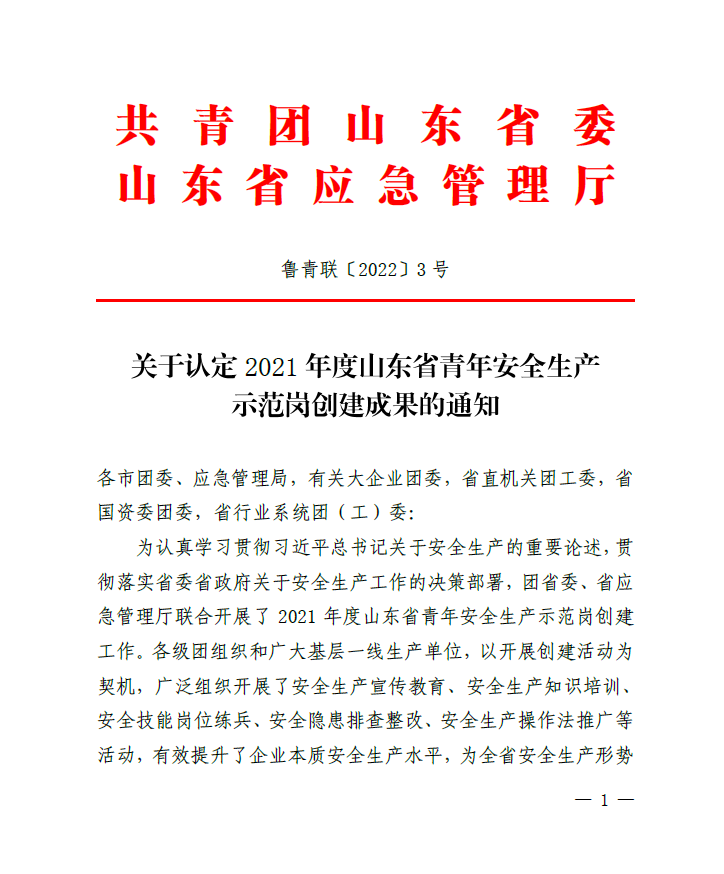 喜報(bào)!水發(fā)能源沂南電站榮獲“山東省青年安全生產(chǎn)示范崗”榮譽(yù)稱號(hào)