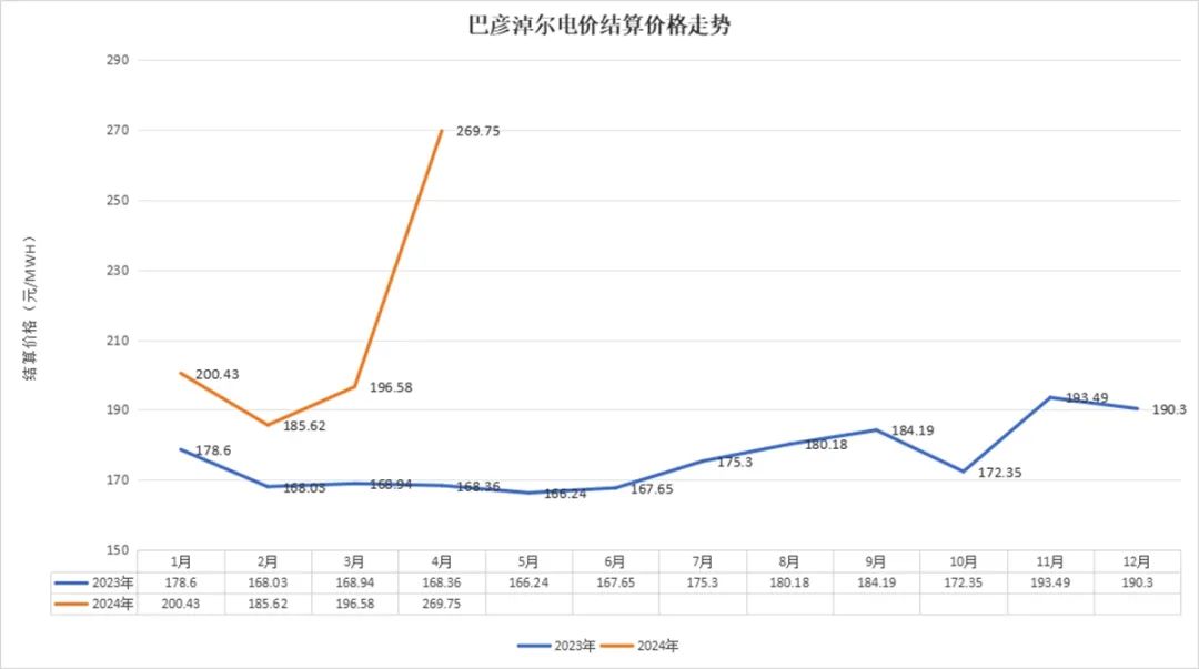 巴彥淖爾電站4月份結算價格同比增長60.22%